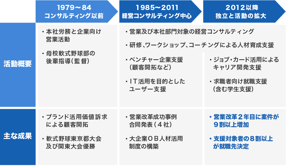 下記3つの信条に基づいて経営コンサルティングとキャリアコンサルティングを組み合わせて企業(組織)と個人を支援しています。
